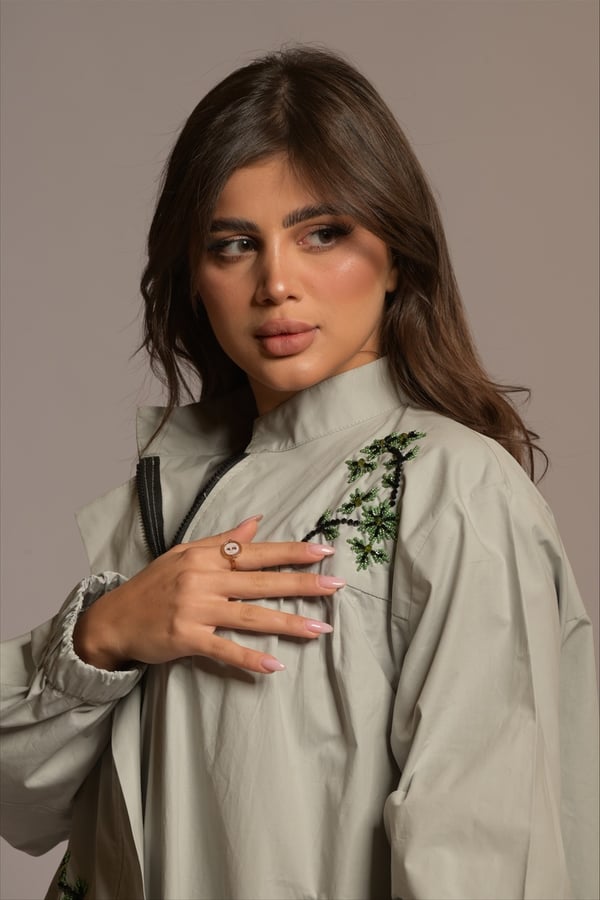 دراعه سحاب بالوسط كامل -الموديل من الامام اقصر من الخلف