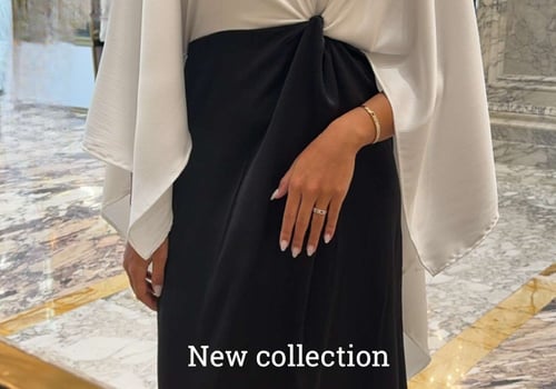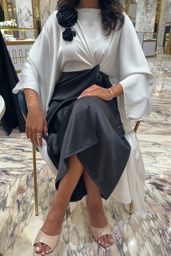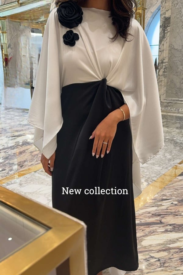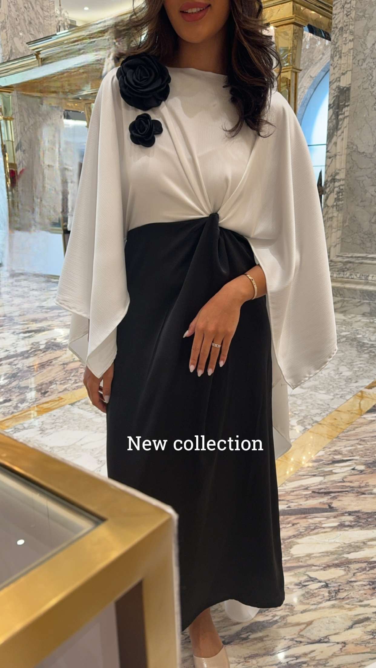 فستان الخام كريب ابيض واسود تفصيل مده التسليم اسبوعين